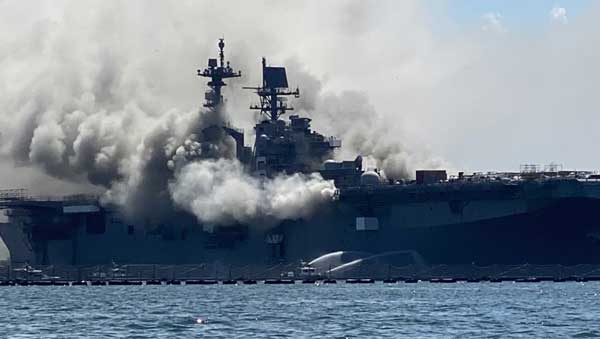 Пожар на универсальном десантном корабле USS